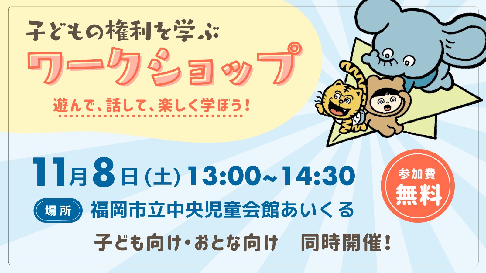 紙ひこうきやすごろくなどの遊びを取り入れたワークショップで、「子どもの権利」について楽しく学びます。