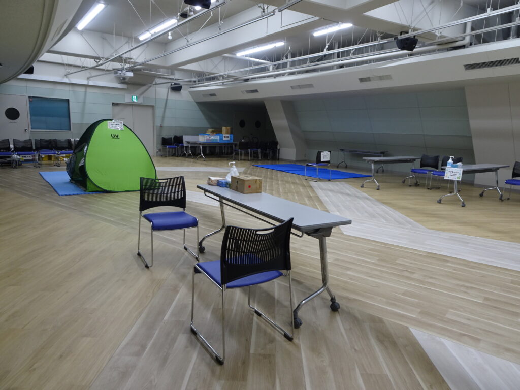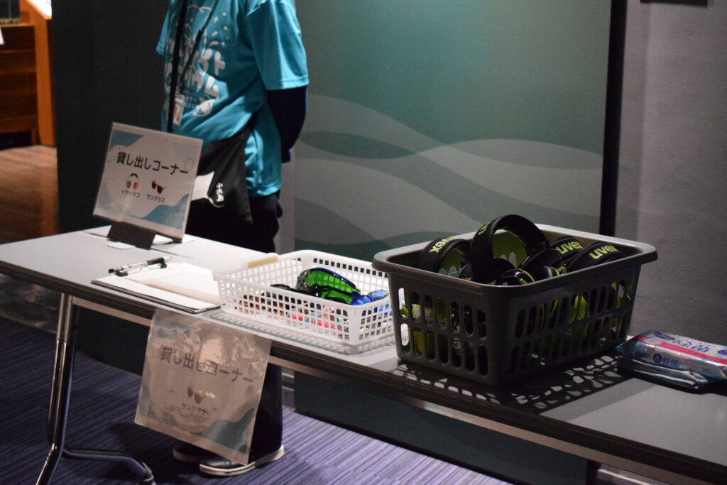 イヤーマフやサングラスの貸出、支援グッズの展示を行いました。