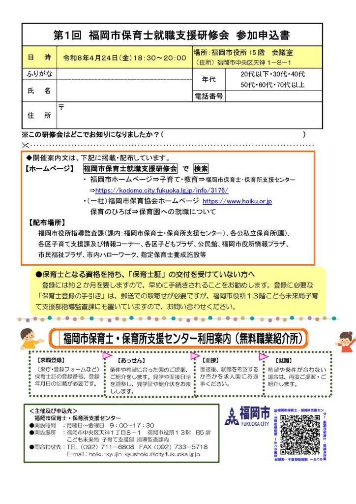 3.令和8年度 福岡市保育士就職支援研修会の予定