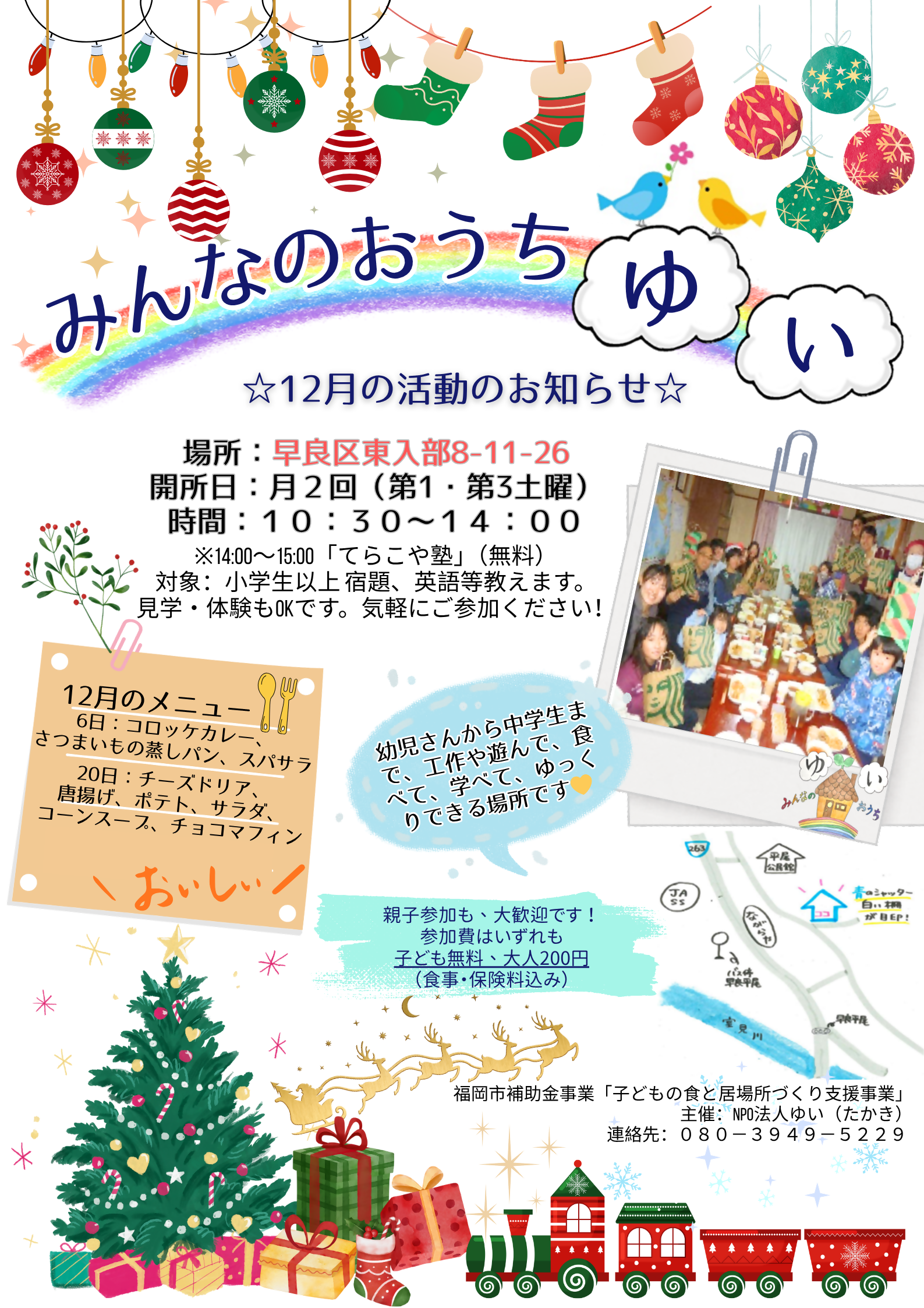 ・子ども食堂 中学生以下無料、高校生以上200円以上(任意)