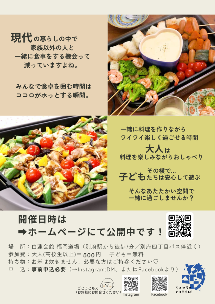 要申込(開催日の3日前から電話、Instagram、公式ラインにて)