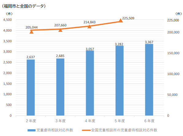 | こども総合相談センター虐待相談対応件数 | 2,637 | 2,685 | 3,057 | 3,282 | 3,367 |